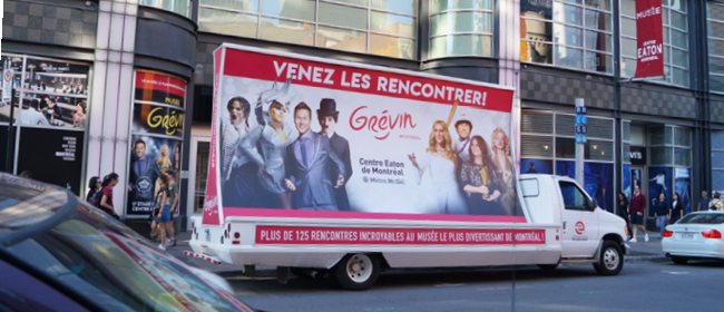 Euromobile offre ses services en publicité mobile depuis près de 25 ans. Aussi à l’aise avec les grandes agences publicitaires comme avec les petites, nous avons également des expériences solides avec l’annonceur direct et autres partenaires spécialisés en marketing opérationnel sur des actions intégrant activation et visibilité événementielles. La force du média, des connaissances poussées dans son application et un réseau de fournisseurs expérimentés font de Euromobile un incontournable pour commander une campagne d’affichage efficace, c’est-à-dire, alliant la bonne couverture avec la bonne fréquence. Nous avons en mains plusieurs études d’efficacité média qui confirment que la publicité mobile génère le meilleur retour sur investissement de l’industrie, que ce soit au Canada autant qu’à l’international. Ces études sont disponibles et commentées sur simple demande auprès d’Euromobile.